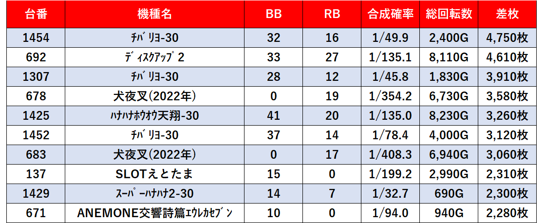 2022.07.14(木)エスパス新宿歌舞伎町結果データ